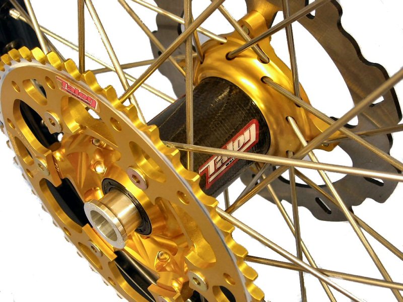 Especially for all you weight freaks out there, Talon has developed an ultra light hub with carbon. Available in the same colours as the standard hubs (silver, gold, black, red, blue, titanium, magnesium…). A complete set (front and rear) saves you about 950 grams! |